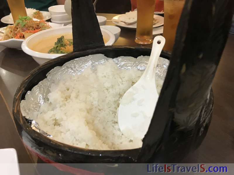 まずご飯が出されます。日本でいうお櫃のような入れ物に入ってご飯が出てきますが、この赤と黒の独特なお櫃もマレーシアの中でマラッカ以外ではお見かけしません。